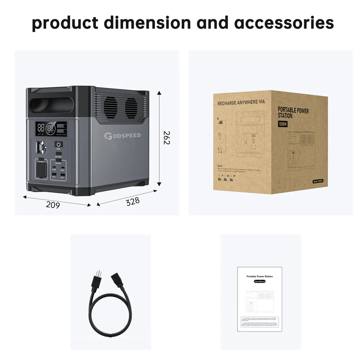 GODSPEED’s 1200W portable power station delivers 1024Wh capacity with 1800W overload protection, 9 versatile ports, and rugged reliability for outdoor adventures.