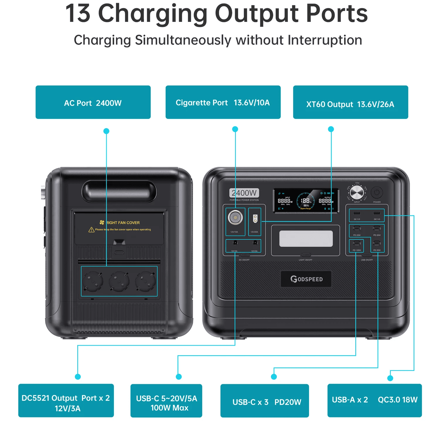 Output Interface: 4x Type-C, 2x USB-A, 2 x 5521dc, Cigarette port , XT60